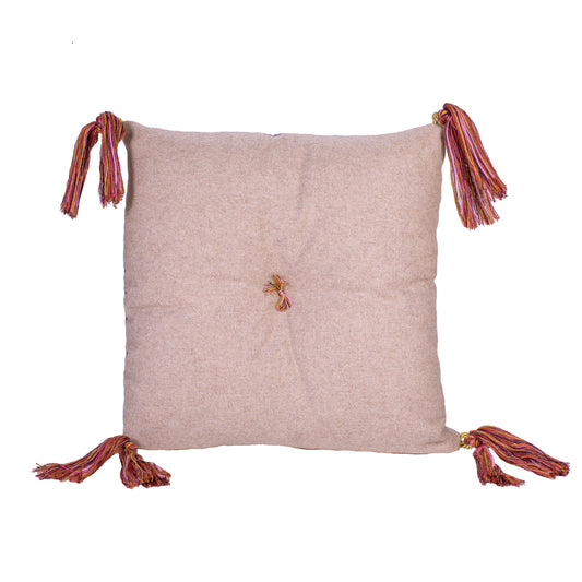 Pyramid Cushion in Magenta with Multi Colour Tassels